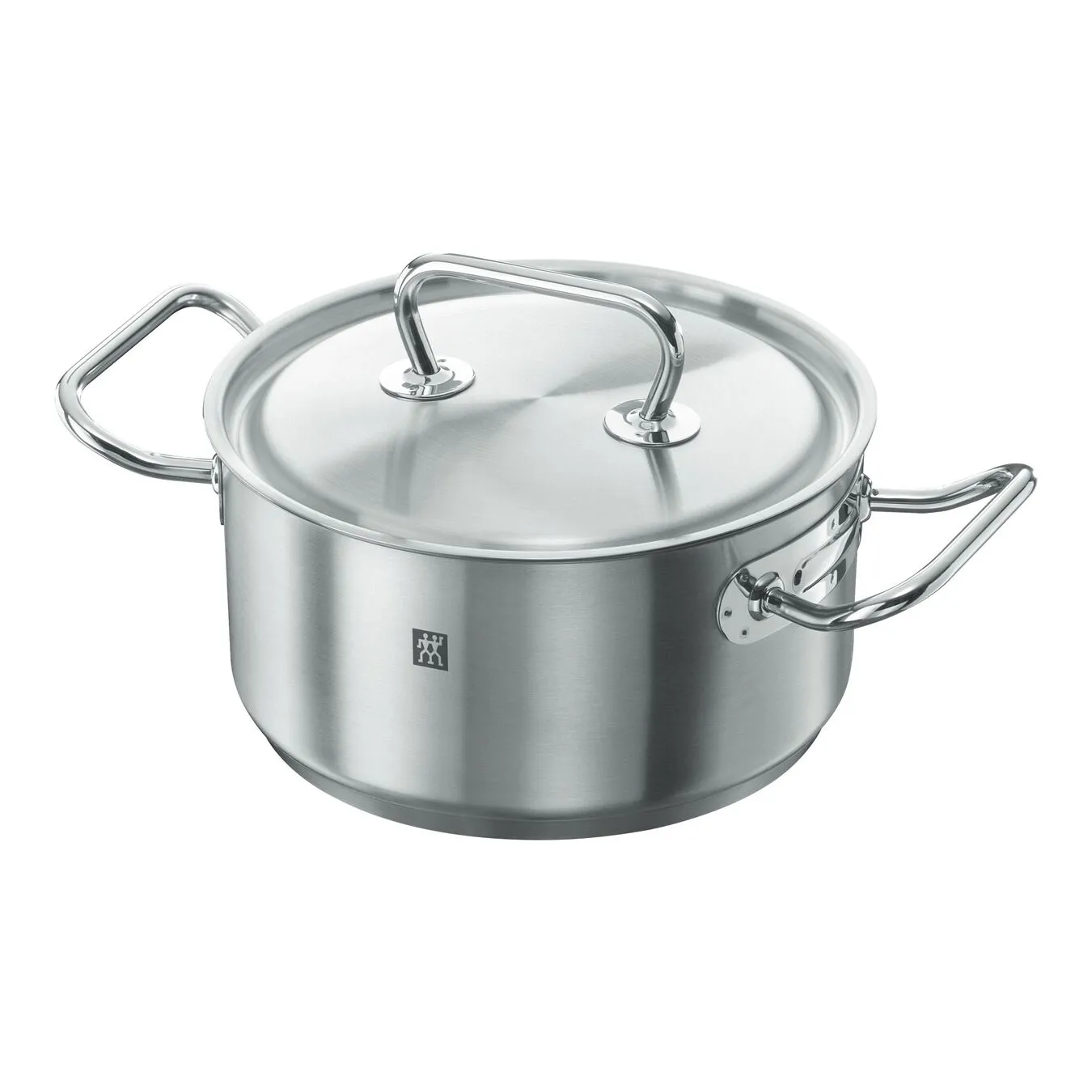 Der 20 Zentimeter große Bratentopf von ZWILLING mit einem Fassungsvermögen von drei Litern und einem fest schließenden Deckel ist der ideale Topf zum Braten, Schmoren und Dünsten. In ihm gelingen selbst größere Fleischstücke oder ein leckeres Gulasch. Ebenso gut eignet sich dieser Topf aber auch zum schnellen Garen von Gemüse. Der drei Liter fassende Bratentopf aus der Reihe TWIN Classic von ZWILLING ist daher ein echtes Multitalent und eine Bereicherung für jede Küche. Die Töpfe der Reihe TWIN Classic bestehen aus hochwertigem Edelstahl und sind dadurch pflegeleicht, kratzunempfindlich, hygienisch und geschmacksneutral. Sie besitzen einen Sandwichboden mit einem Kern aus reinem Aluminium, das die Hitze optimal weiterleitet. Aus dieser Serie gibt es bei ZWILLING noch viele weitere Koch- und Stieltöpfe, sodass Sie sich leicht ein komplett neues Topfset zusammenstellen können. Der Bratentopf von ZWILLING eignet sich für jede Art von Herd, einschließlich Induktionsherde, und kann nach dem Gebrauch in der Spülmaschine gereinigt werden. Seine ergonomisch geformten Griffe bestehen ebenfalls aus Edelstahl und bleiben beim Kochvorgang angenehm kühl. In diesem praktischen Topf zaubern Sie mühelos leckere Gerichte mit Fleisch oder Fisch oder ein köstliches vegetarisches Gericht, wie ein Ratatouille aus verschiedenen Gemüsesorten.