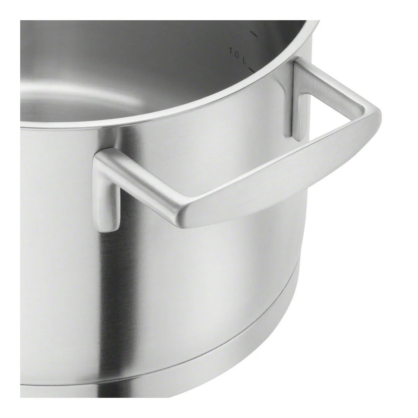 Mit dem Kochgeschirrset aus der Serie ZWILLING Vitality lassen sich vielerlei verschiedene Gerichte und selbst komplette Menüs zubereiten. Das 5-teilige Kochgeschirrset von ZWILLING besteht aus drei Kochtöpfen mit Durchmessern von 16, 20 und 24 cm, einem Bratentopf mit Durchmesser 20 cm und einem 16 cm großen Stieltopf in dem sich gut Saucen und Flüssigkeiten wie beispielsweise Milch erwärmen lassen. Der SIGMA Classic+ Sandwichboden sorgt bei allen Töpfen für eine schnelle und gleichmäßige Wärmeverteilung und Kratzunempfindlichkeit. Dank der integrierten Füllskala lassen sich Zutaten einfach abmessen. Abgesehen vom Stieltopf sind alle Töpfe mit Deckeln ausgestattet. Sie bestehen aus Glas und machen es daher leicht, die Speisen während der Garzeit immer im Blick zu behalten. Darüber hinaus sind die Deckel mit Silikondichtungen ausgestattet, die wasserarmes und energiesparendes Kochen ermöglichen. Die satinierte Oberfläche verleiht dem Kochgeschirr ein edles Aussehen.