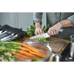Die Robustheit, die eisgehärte Klinge, das ansprechende Drei-Nieten-Design sowie ein geringes Gewicht sind die Eigenschaften, die an der Serie ZWILLING Gourmet geschätzt werden. Dieses Messerset aus der Serie Gourmet von ZWILLING überzeugt nicht nur Kocheinsteiger*innen durch seine zahlreichen Einsatzmöglichkeiten. Dank dem ergonomischen Griff aus Kunststoff in der Farbe Schwarz liegt das Küchenmesser stets angenehm in der Hand.