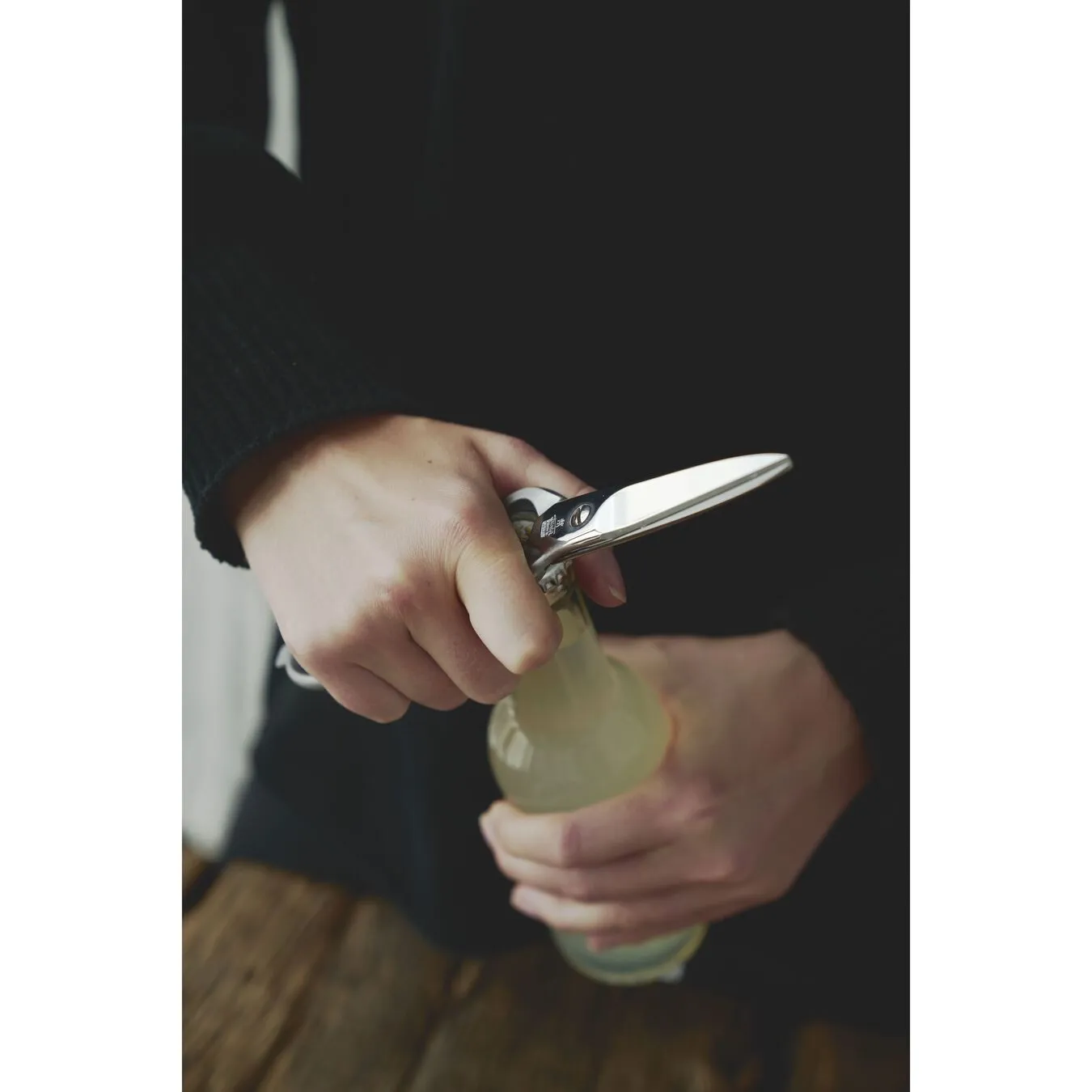 Ein Klassiker braucht keine Verbesserung: Diese Vielzweckschere aus der Scheren-Serie von Zwilling erleichtert das Haushalten seit über 75 Jahren – unverändert in Form und Funktion. Schneiden Sie sicher Kräuter, Papier oder sogar Teppich. Dank kluger Zusatzfunktionen können Sie auch Flaschen, Deckel und andere Verschlüsse mühelos öffnen. Dies macht unter anderem die verzahnte Aussparung im Griff möglich. Die robusten Scherenblätter aus Spezialstahl werden von Hand nach bewährter Zwilling-Tradition gefertigt und geschliffen. Das Schneidgut rutscht nicht weg, sondern wird von der Micro-Verzahnung sicher festgehalten. Selbst rutschigstes Material schneiden Sie so mühelos. Der rostfreie, langlebige Spezialstahl wurde speziell veredelt, damit Sie lange etwas von dieser Vielzweckschere haben. Die eisgehärteten Blätter sind korrosionsbeständig. Die breiten, ergonomischen Griffe liegen angenehm in der Hand, sodass Sie die Kraft Ihrer Hände voll nutzen können. Mit der 20 cm langen Vielzweckschere in Rot aus der Küchenhelfer-Serie von Zwilling werden Sie Teil der Tradition und erleben einen langlebigen Helfer für den Alltag.