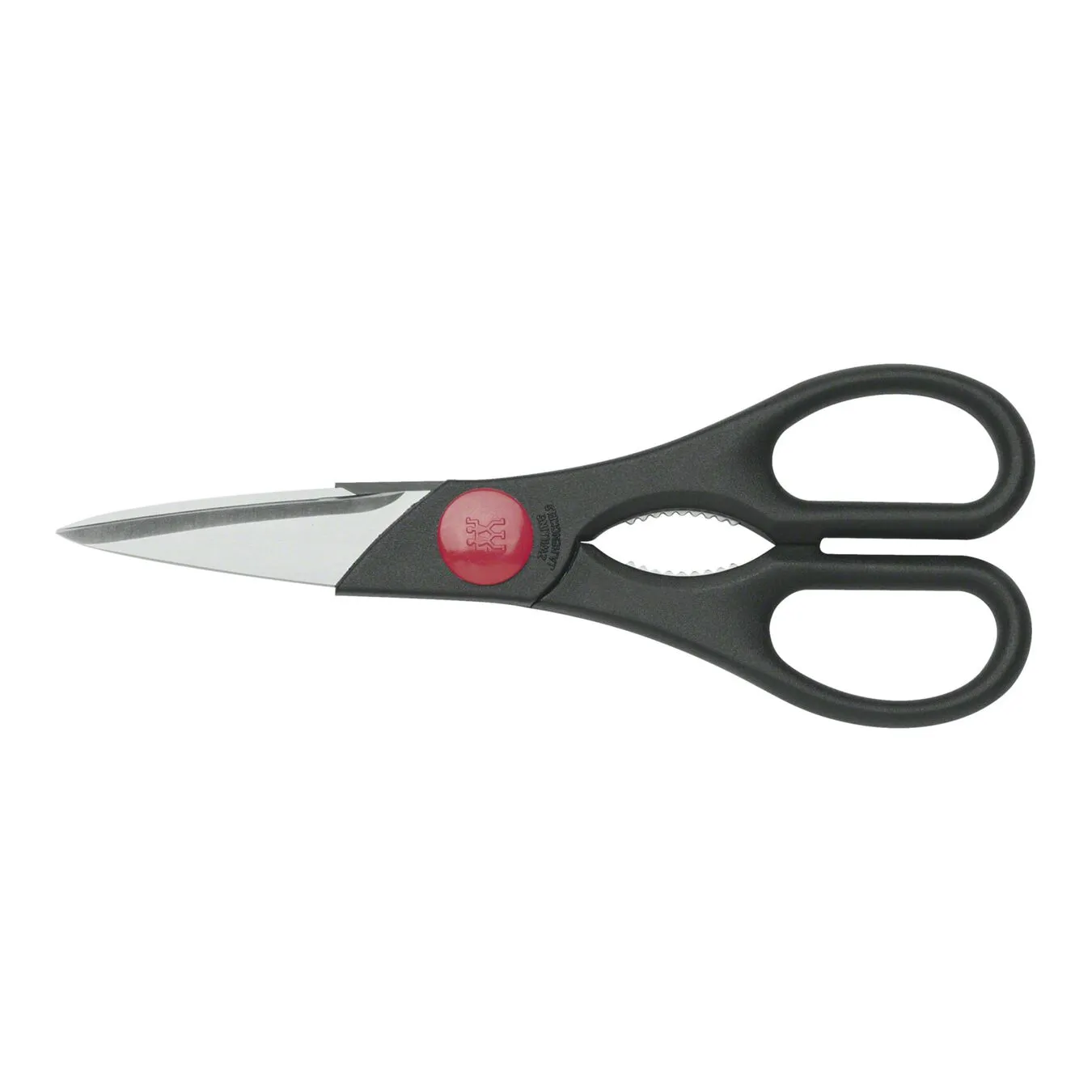 Eine scharfe Schere, die vielseitig einsetzbar ist, darf in keinem Haushalt fehlen. Wer lange Freude daran haben möchte, greift zur ZWILLING Vielzweckschere. Die 20 cm lange Schere liegt als Leichtgewicht in der Hand und zeigt ihre ganze Kraft, wenn es darum geht, etwas auf-, ab und durchzuschneiden. Klappt auch problemlos bei stärkeren Materialien. Dafür sorgen die robusten, handgeschliffenen Scherenblätter aus rostfreiem Edelstahl, der in einem speziellen Verfahren gehärtet wurde. Und die Mikroverzahnung fixiert das, was geschnitten werden soll, geradezu perfekt. Der integrierte Öffner hilft dir, beispielsweise festsitzende Drehverschlüsse zu lockern. Schönes Detail: die rote Feststellschraube mit ZWILLING Logo. Sollte es nötig sein, kannst du damit die Scherenblätter nachjustieren.